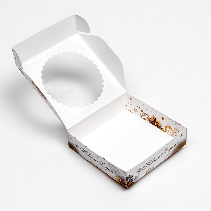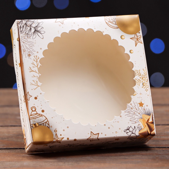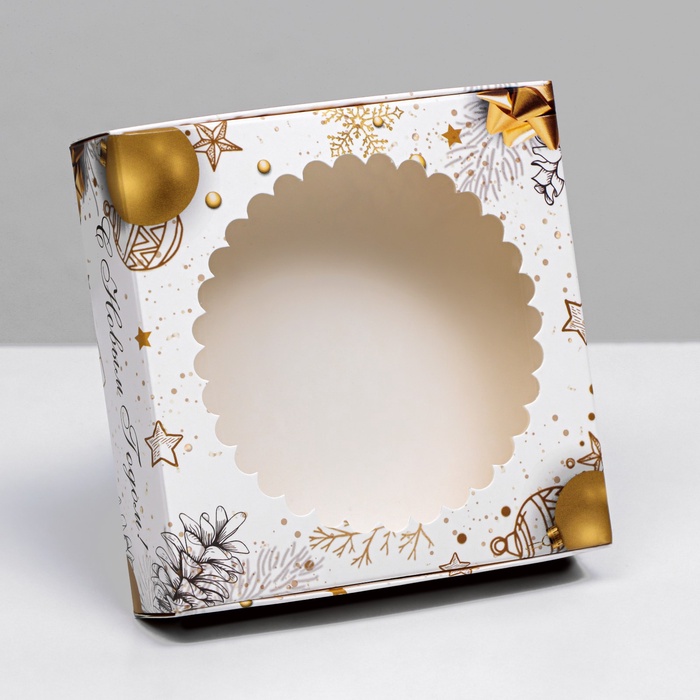 Коробка новогодняя с окном — идеальный выбор для упаковки десертов, сувениров и подарков.