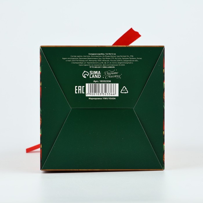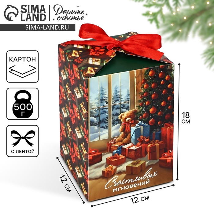 Коробка подарочная новогодняя складная «Счастливых мгновений», 12 х 18 х 12 см — Характеристики