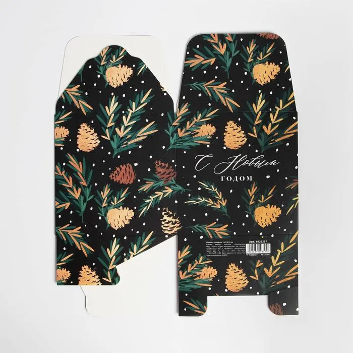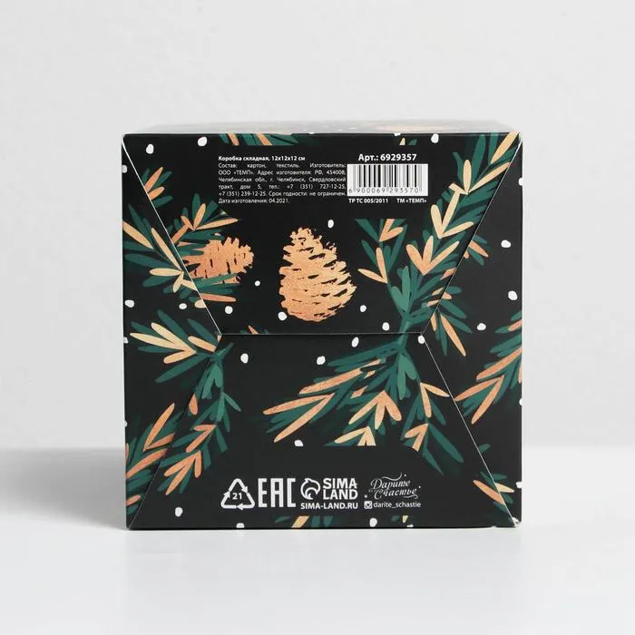 Коробка подарочная новогодняя складная «Шишки», 12 х 12 х 12 см, Новый год — Характеристики