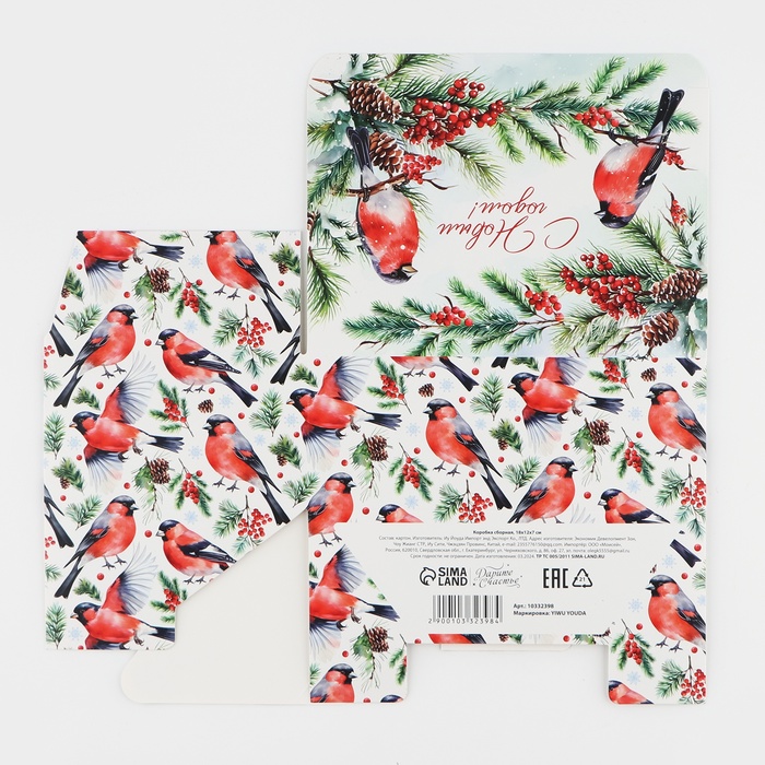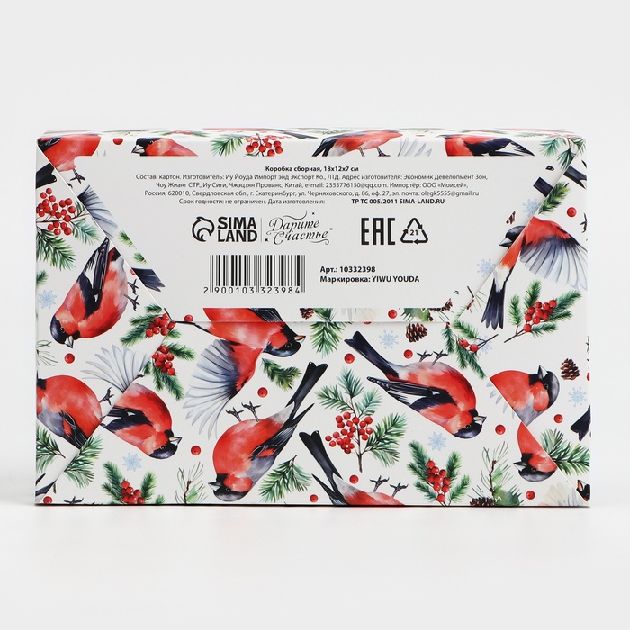 Коробка подарочная новогодняя складная «Снегири», 18 х 12 х 7 см — Характеристики