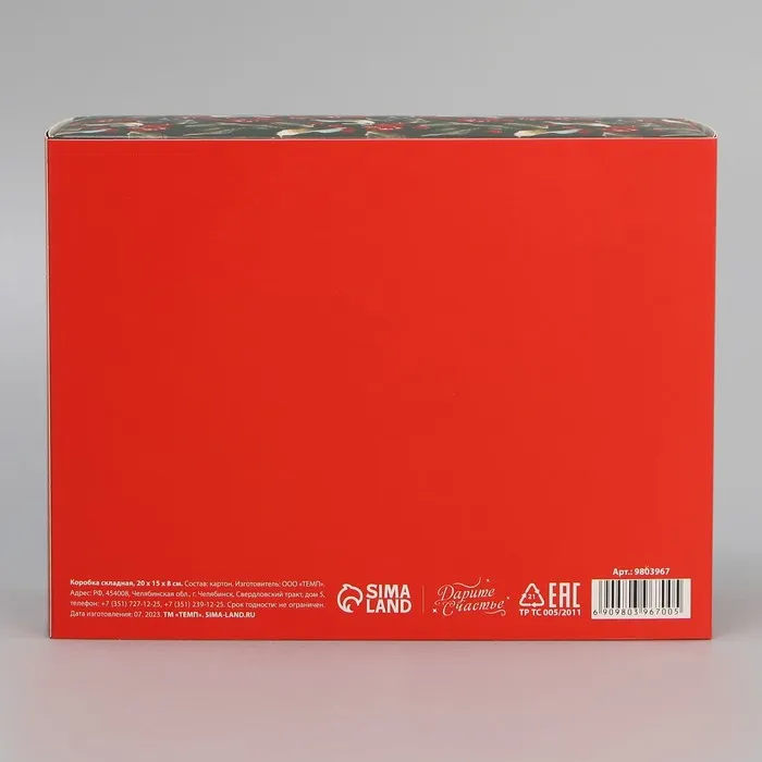 Коробка подарочная новогодняя складная «Снегири», 20 х 15 х 8 см — Характеристики