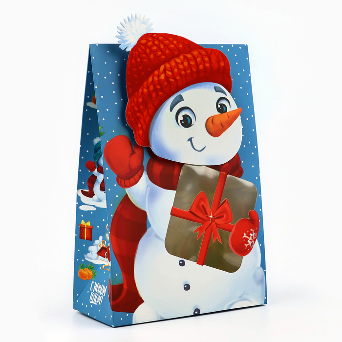 Коробка подарочная новогодняя складная «Снеговик», 15 х 7 х 22 см, Новый год — Характеристики