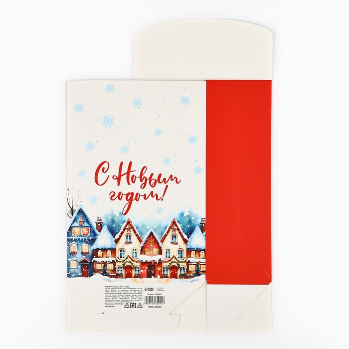 Коробка подарочная новогодняя складная «Снежный город», 15 х 7 х 22 см — Характеристики