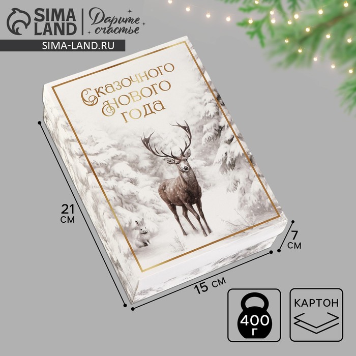 Коробка подарочная новогодняя складная «Снежный лес», 21 х 15 х 7 см — Характеристики