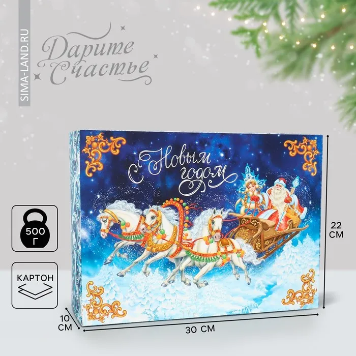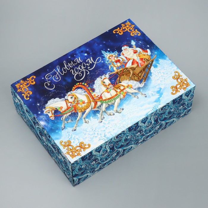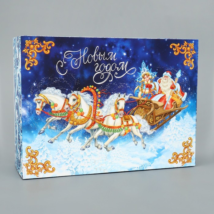 Коробка подарочная новогодняя складная «Тройка лошадей», 22 х 30 х 10, Новый год — Характеристики