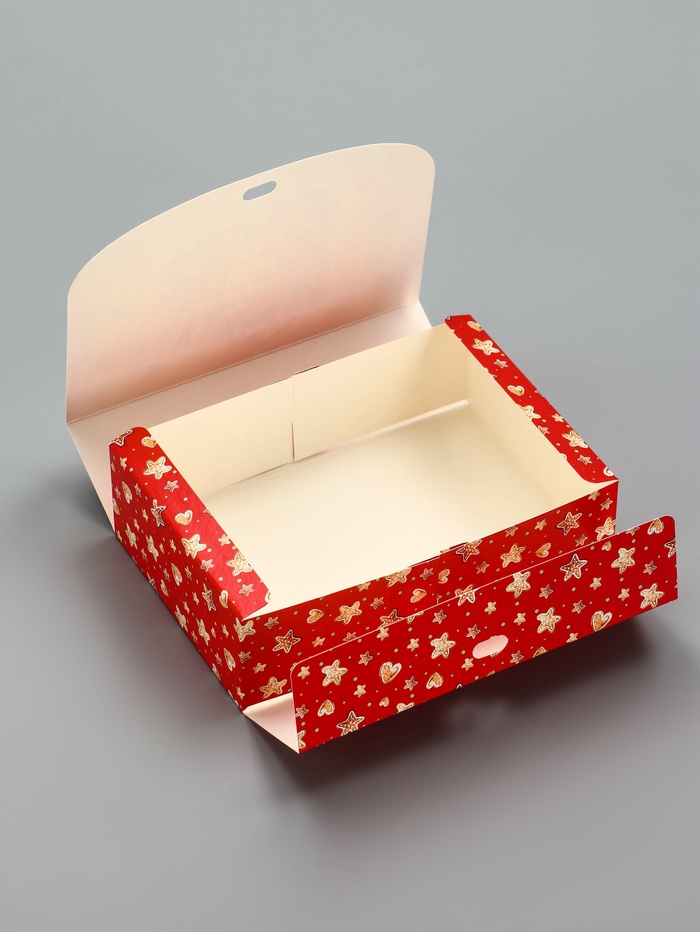 • Качественный картон: Плотный материал сохраняет форму и защищает содержимое. Коробка выглядит аккуратно и празднично.