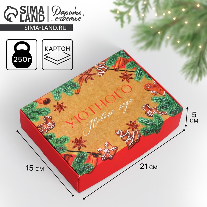 Коробка подарочная новогодняя складная «Уютного нового года», 21 х 15 х 5 см — Характеристики