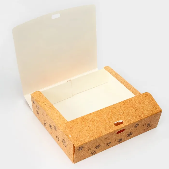 Изготовленная из прочного картона, коробка обеспечивает надежную защиту содержимого и легко складывается, что упрощает хранение и транспортировку. Яркий новогодний дизайн с праздничными элементами создает атмосферу волшебства и радости, а мягкая лента на крышке добавляет дополнительный элемент изысканности и завершенности.