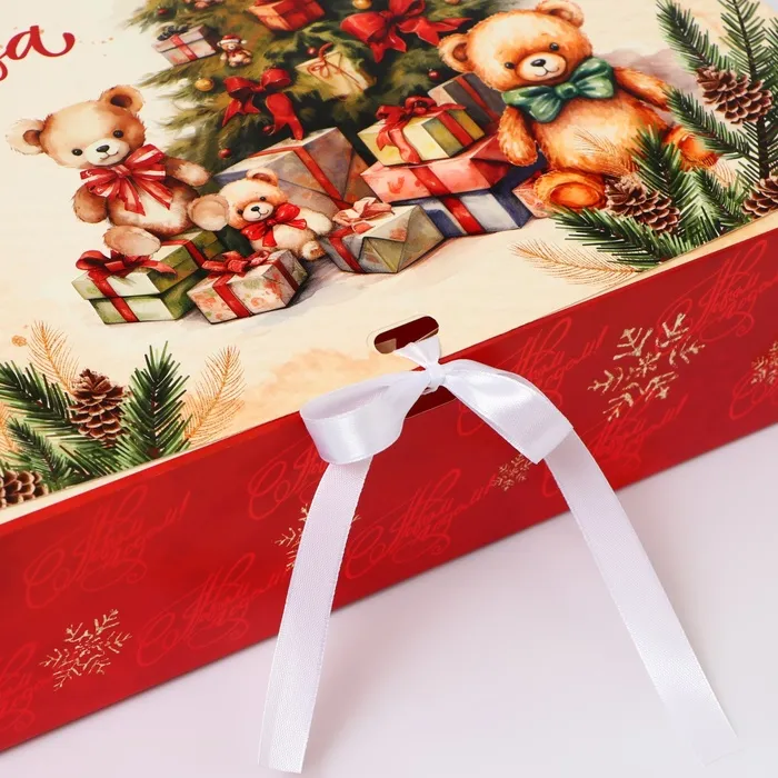 Коробка подарочная новогодняя складная, упаковка, «Ёлка и медведь», 31×24.5×8 см . — Характеристики