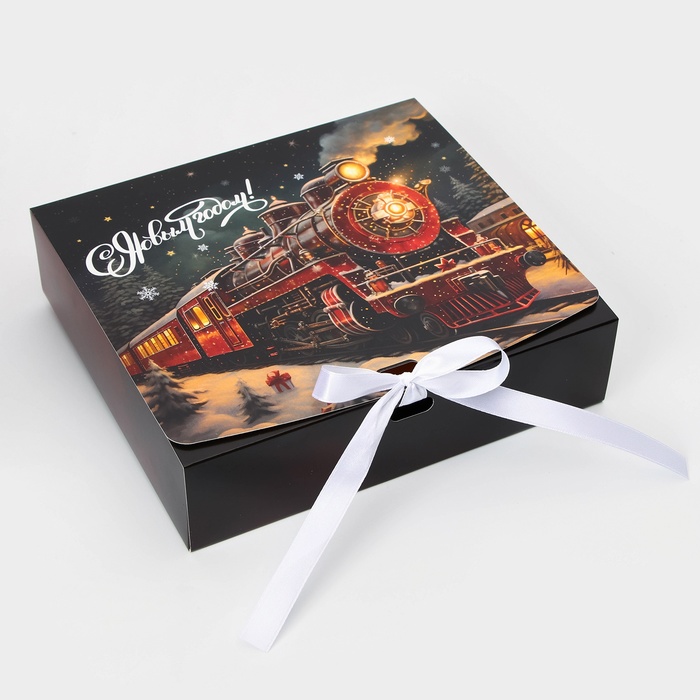 Коробка подарочная новогодняя складная, упаковка, «Новогодний Паровоз», 20×18×5 см — Характеристики