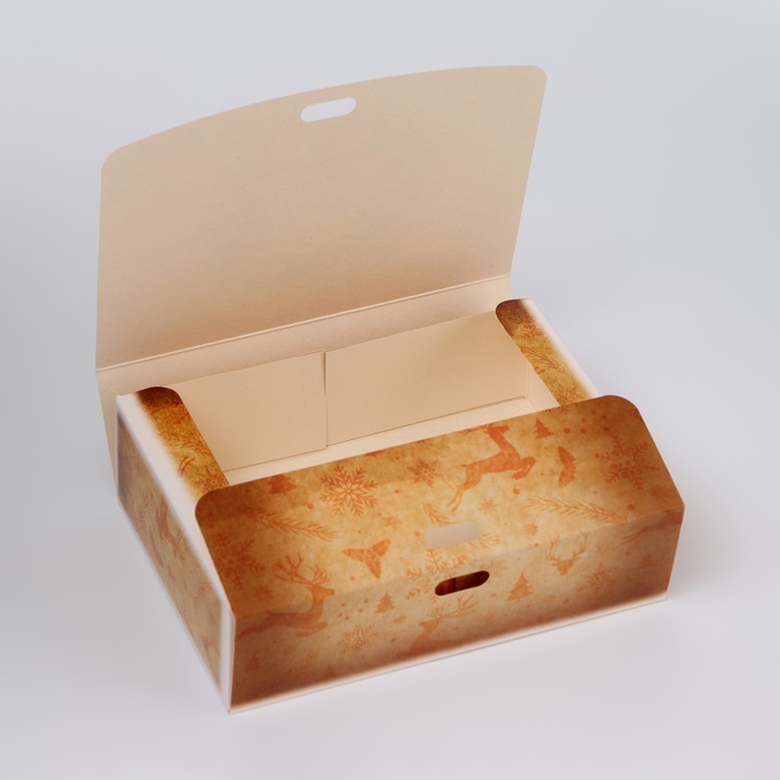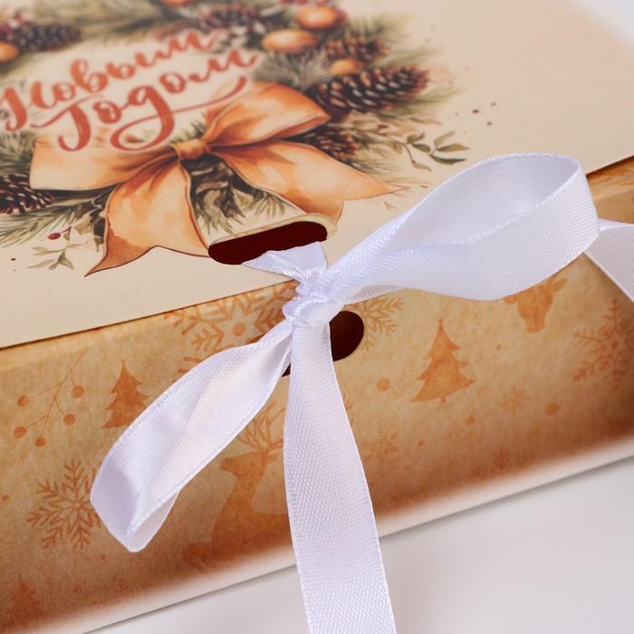 Коробка подарочная новогодняя складная, упаковка, «Олени и снежинки», 16×12×5 см — Характеристики