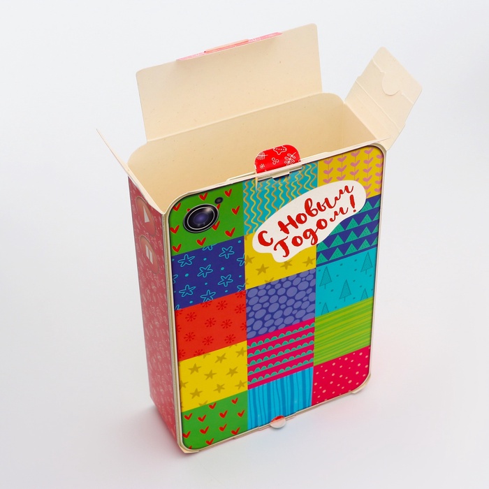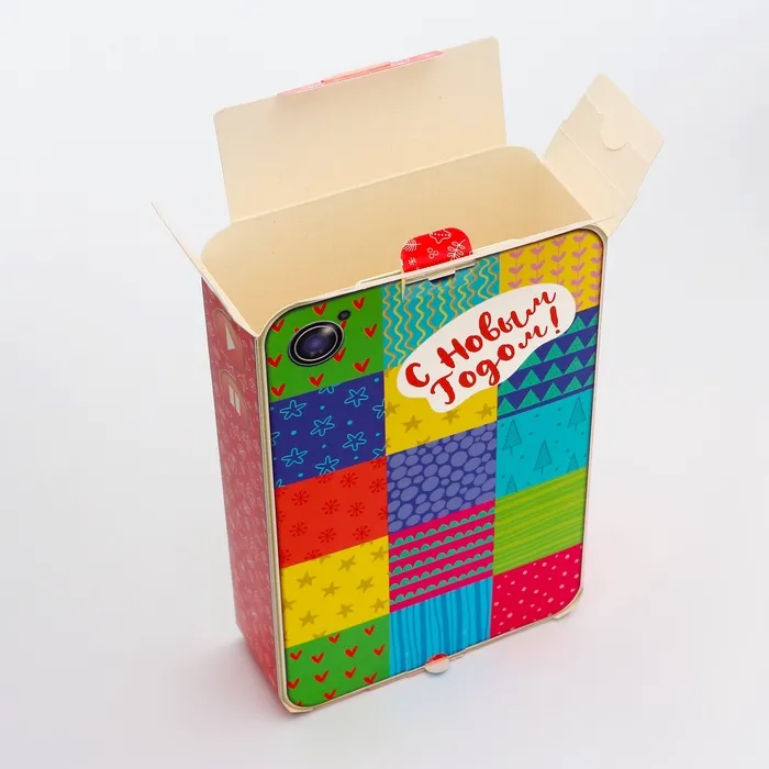 Коробка выполнена из качественных материалов, которые обеспечивают сохранность содержимого. Она имеет яркий и красочный дизайн, который отражает атмосферу Нового года.