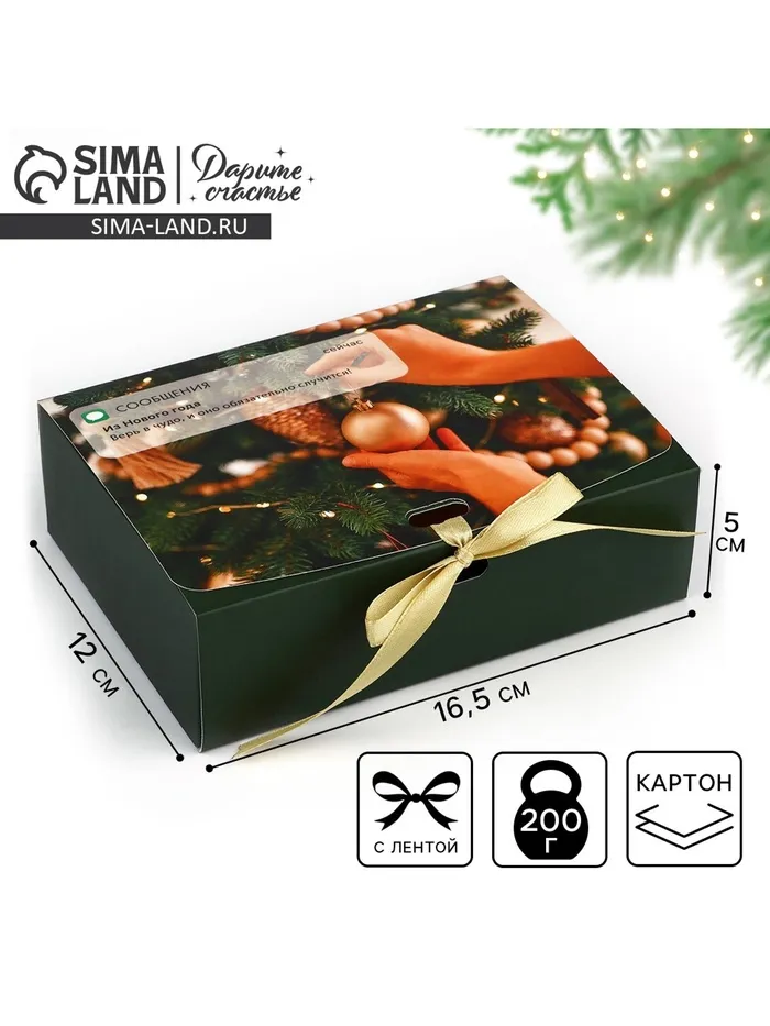 Коробка подарочная новогодняя складная «Верь в чудо», 16.5 х 12 х 5 см, Новый год — Характеристики