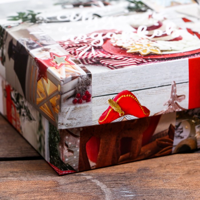 Коробка складная прекрасно подойдет для оформления подарка на Новый год.