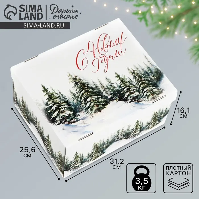 Коробка подарочная новогодняя складная «Зимний лес», 31.2 х 25.6 х 16.1 см — Характеристики