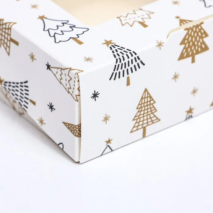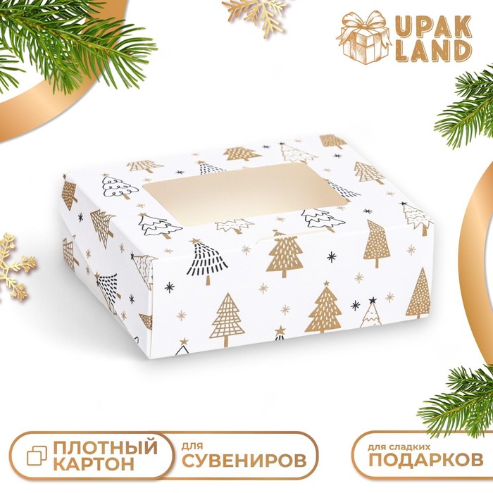 Коробка подарочная новогодняя складная «Золотые ёлки», 10×8×3.5 см — Характеристики