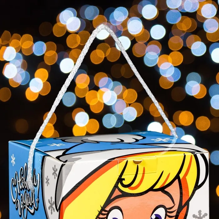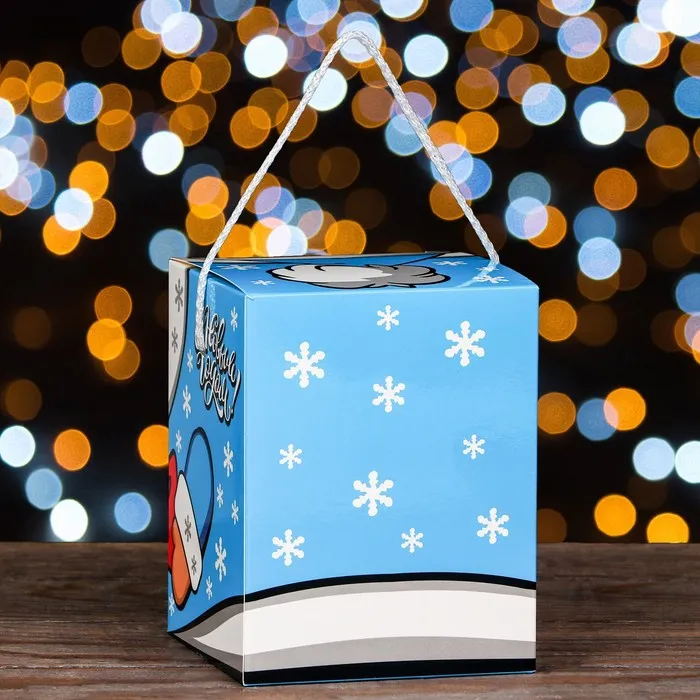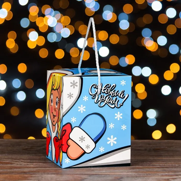 - Эстетичный дизайн: Разноцветные рисунки новогодней тематики сделают упаковку ярким акцентом вашего подарка. Коробка напоминает сундучок, создавая ощущение сказки и радости.