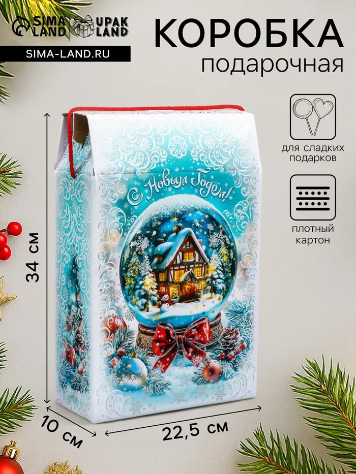 Коробка подарочная новогодняя «Снежный шар» 22.5×34×10 см — Характеристики
