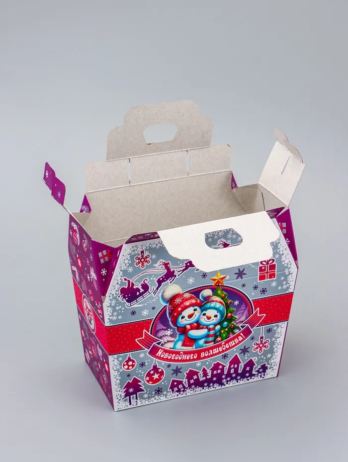 - Качественное исполнение: Плотный картон с металлизированными элементами сохраняет форму и защищает содержимое. Упаковка выглядит нарядно и сохраняет презентабельный вид.