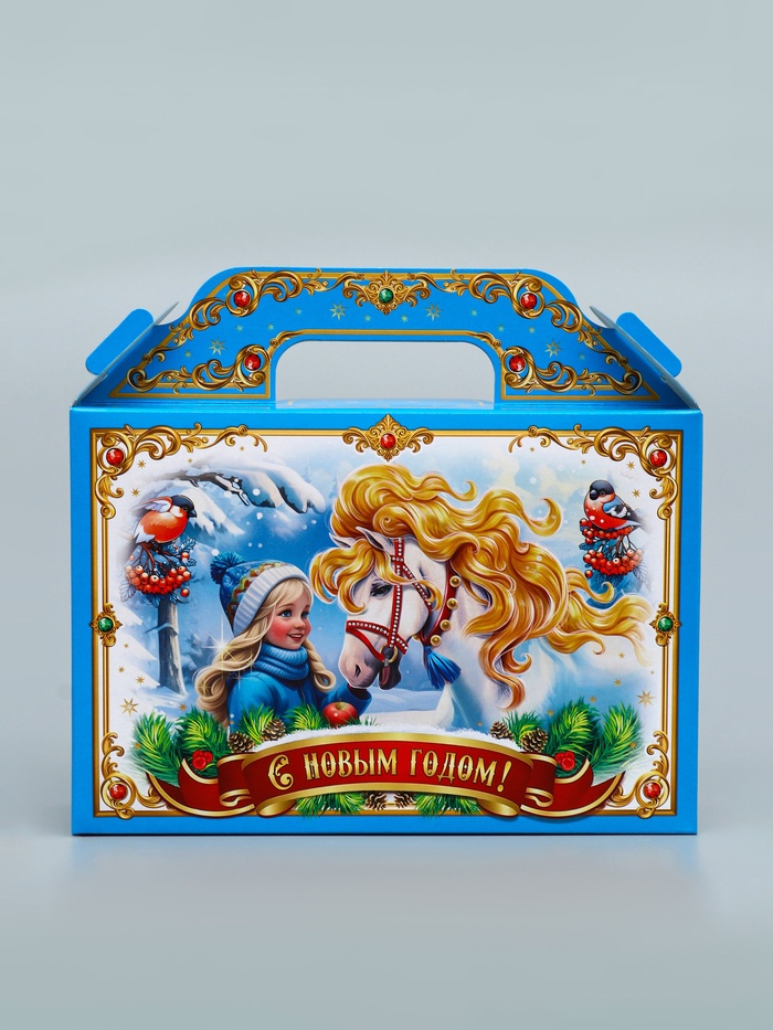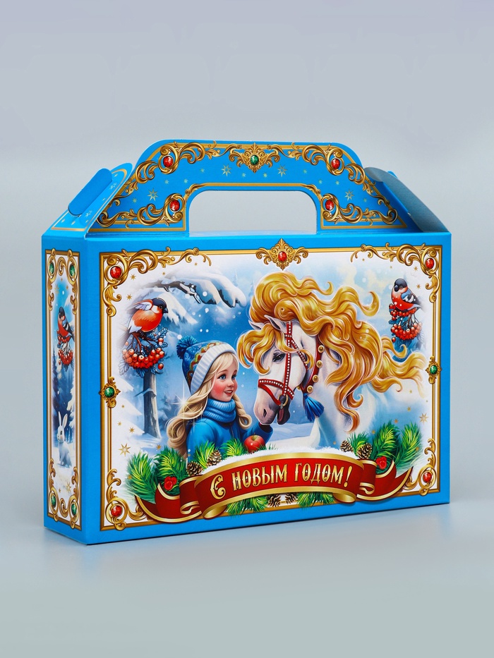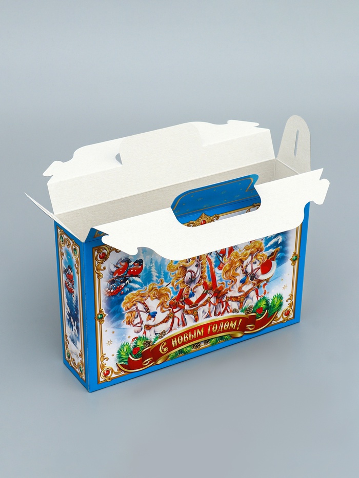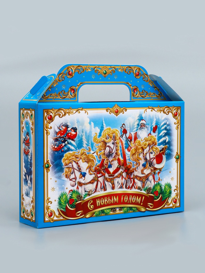 Зимняя сказка в стильной упаковке! Коробка «Тройка» голубая — элегантное решение для новогодних подарков. Её необычный цвет и тематический дизайн создают атмосферу волшебного праздника.