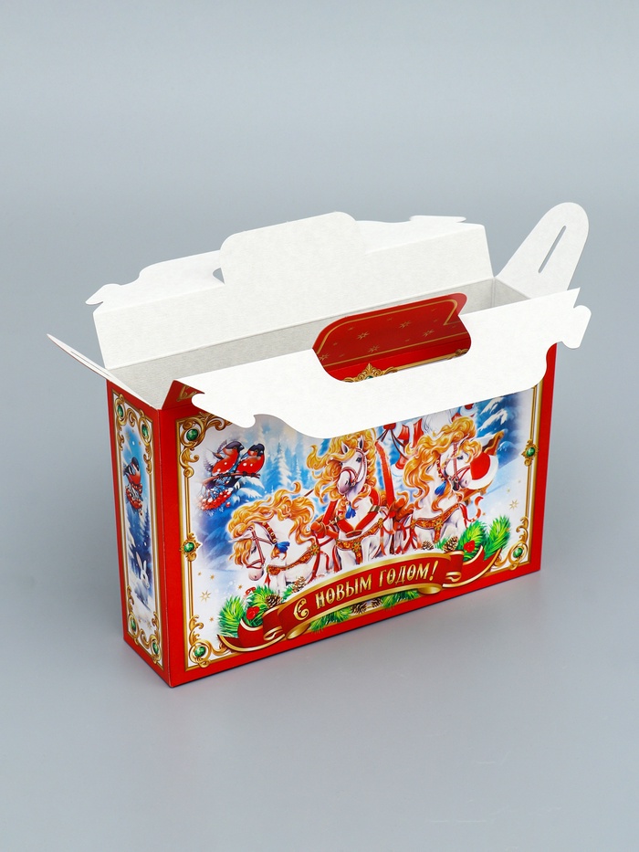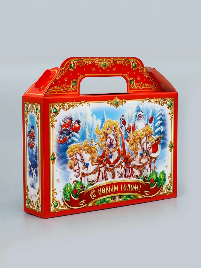 Подарок с русским колоритом: Эта коробка превращает обычный презент в частичку новогодней традиции. Выбирайте «Тройку», когда хотите подчеркнуть национальный характер вашего внимания!