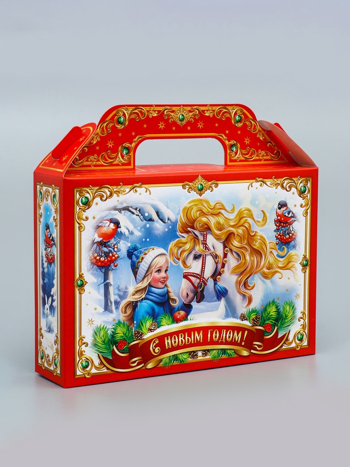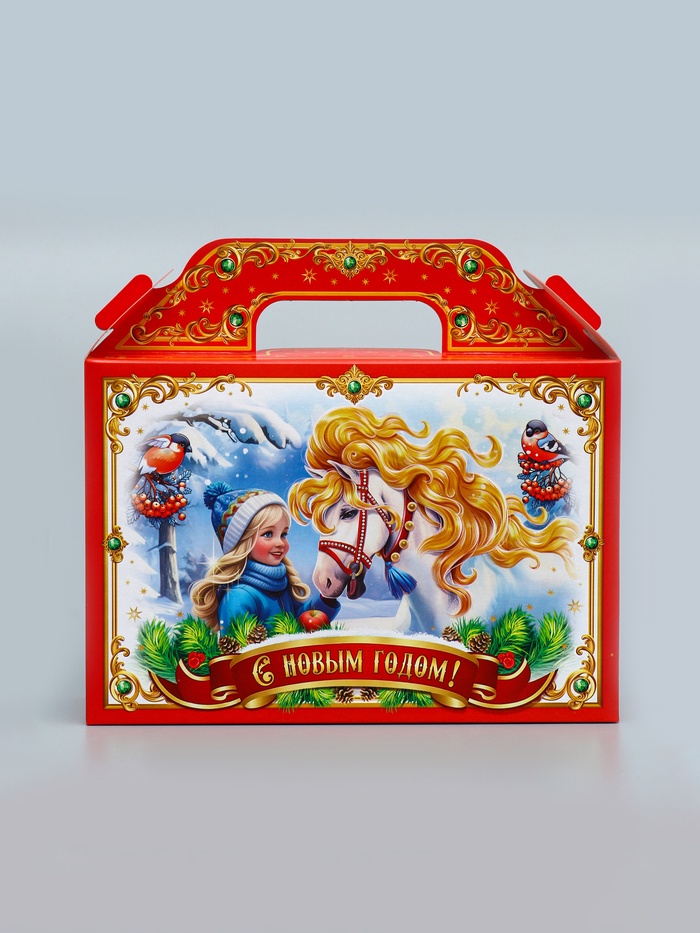 Новогодняя тройка в яркой упаковке! Коробка «Тройка» — стильное решение для праздничных подарков. Её тематический дизайн с символом года создает атмосферу зимнего волшебства.