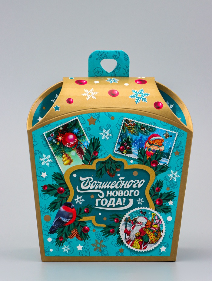 - Качественные материалы: Плотный картон с металлизированными элементами сохраняет форму и защищает содержимое. Упаковка выглядит нарядно и празднично.