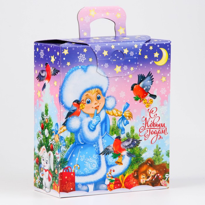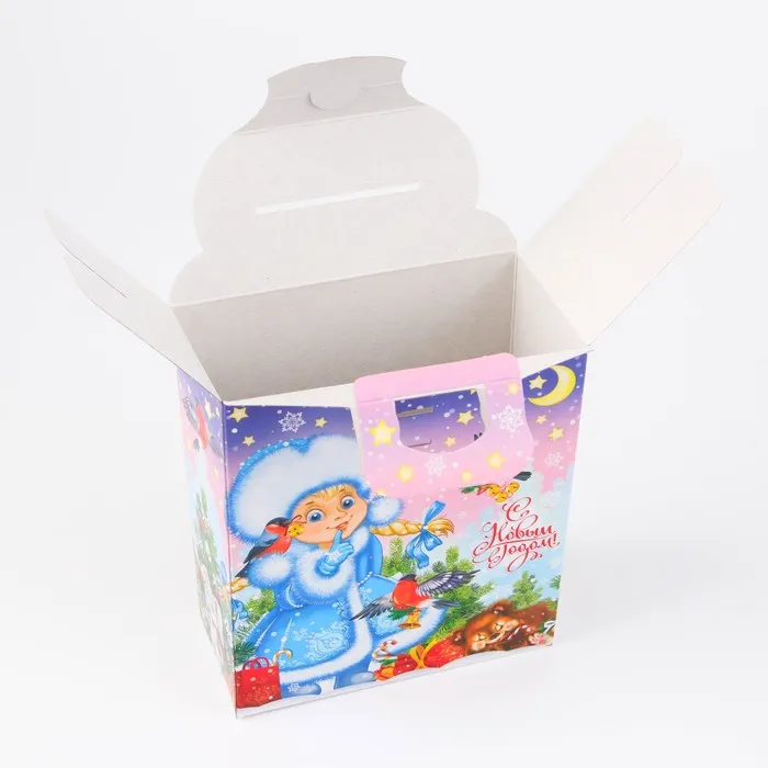Подарочная новогодняя коробка предназначена для использования на утренниках и для подарков под ёлку для детей. Эта коробка создана специально для того, чтобы сделать праздник еще более ярким и запоминающимся.
