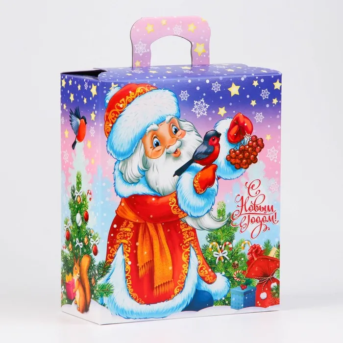 Коробка выполнена из качественных материалов, которые обеспечивают сохранность содержимого. Она имеет яркий и красочный дизайн, который отражает атмосферу Нового года.