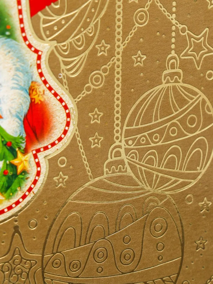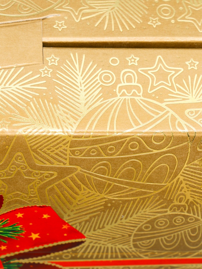 - Премиальный золотистый дизайн: Благородный цвет с новогодними узорами подчеркивает ценность содержимого. Создает праздничное настроение без дополнительного декора.