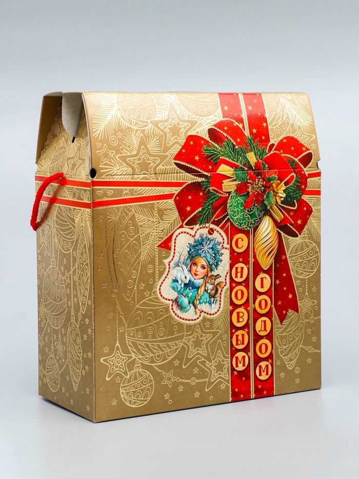 Коробка подарочная новогодняя «Золотая сумка» 21.5×25.6×11 см — Характеристики