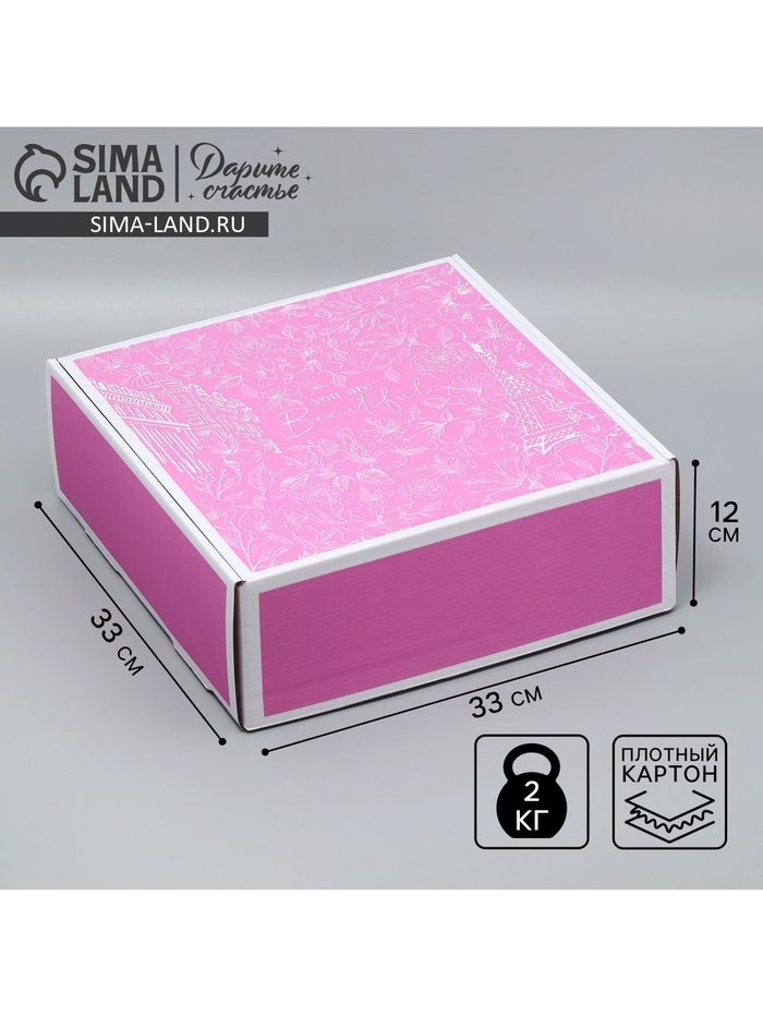 - Прочная конструкция: Плотный картон держит форму, не мнётся при транспортировке. Фигурная форма с откидной крышкой упрощает упаковку подарка.