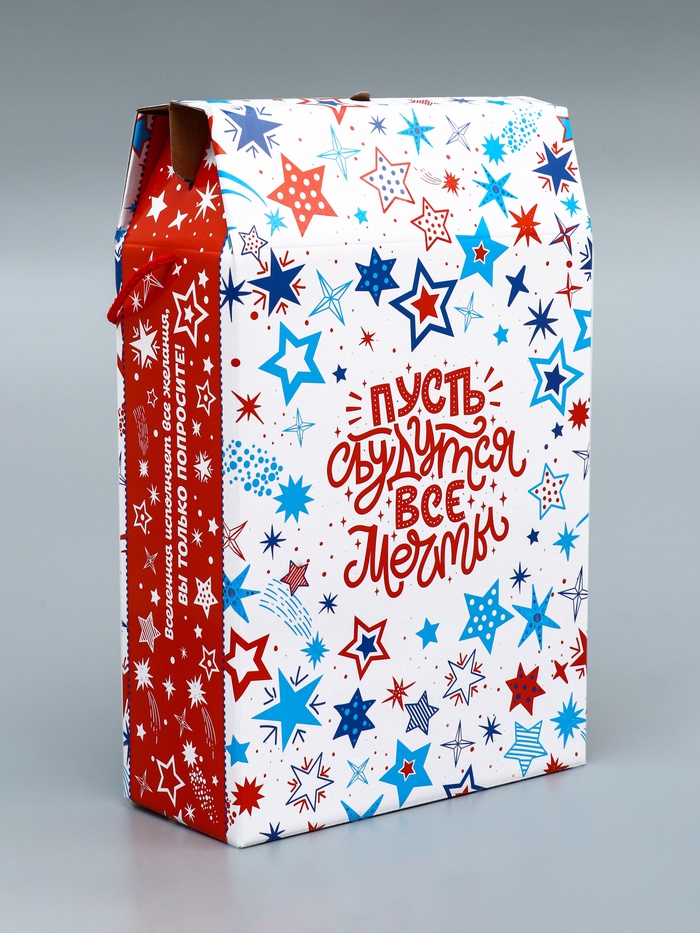 Новогодний подарок достоин красивой упаковки! Подарочная коробка «Звездная сумка» — стильное решение для праздничных презентов. Её зимний дизайн с мерцающими узорами создаёт волшебное настроение даже до момента вручения подарка.