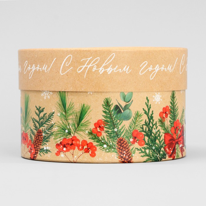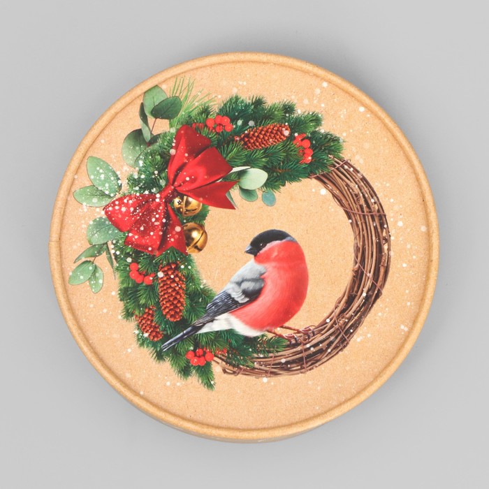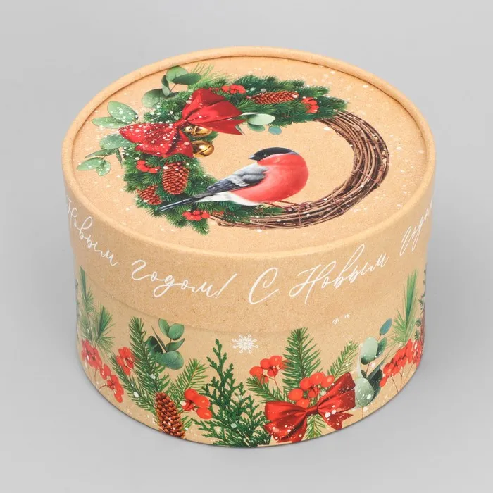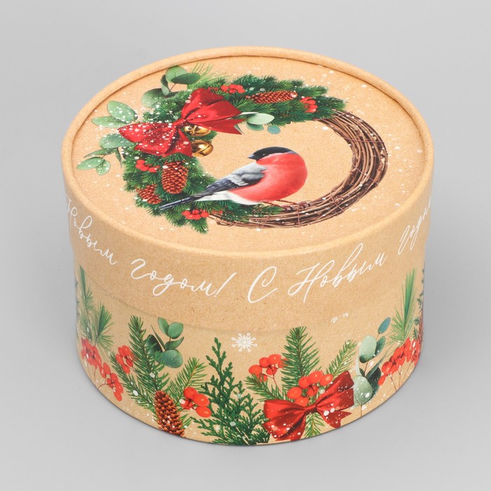 Круглая подарочная коробка «Снегири», 14 х 16 см, Новый год