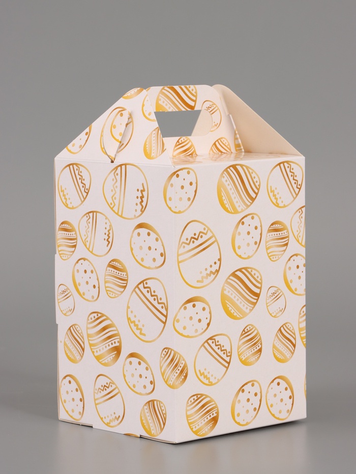 Коробка подарочная пасхальная, с окном и с ручкой «Золотые яйца», 10×10×15 см — Характеристики