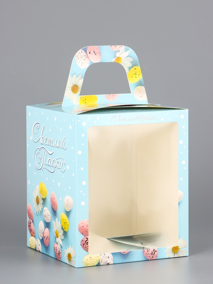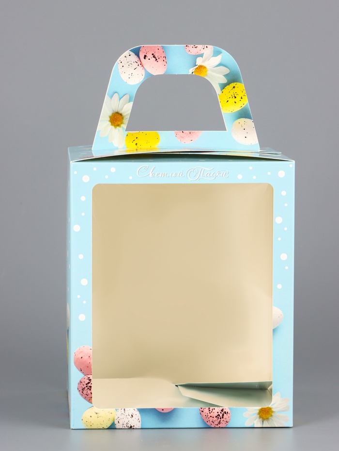 Коробка подарочная пасхальная с окном «Небесная голубая» 15×15×18 см — Характеристики