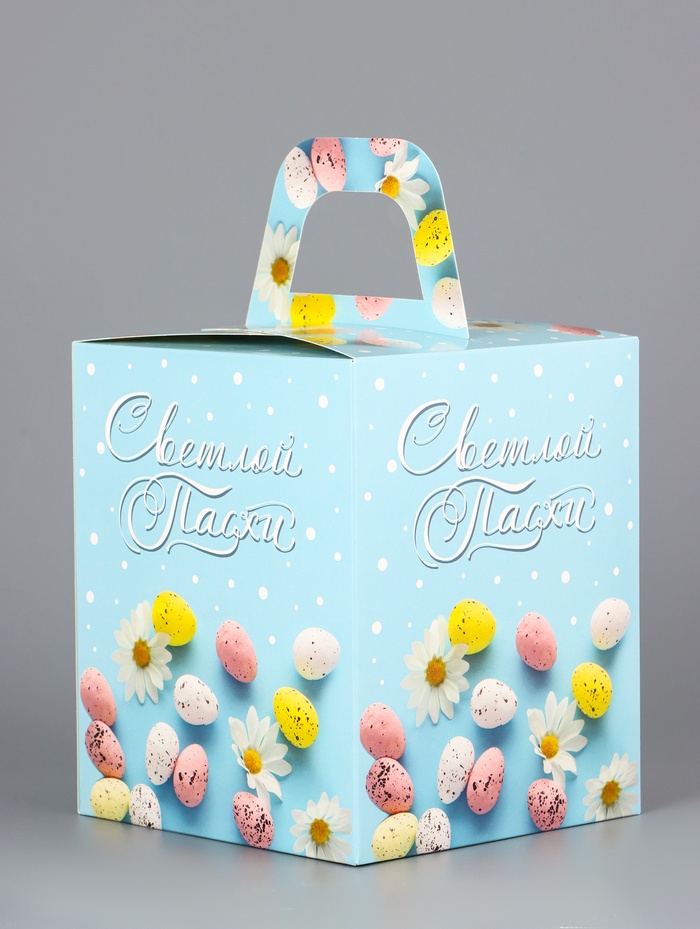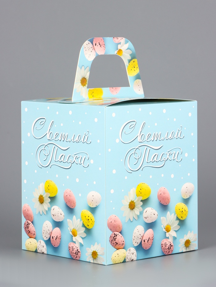 Небесная лёгкость для светлого праздника. Пасхальная коробка с дизайном «Небесная голубая» — это упаковка, которая передаёт ощущение весенней чистоты и торжественности. Её светлый дизайн и аккуратный размер делают её идеальной для изящных и символичных подарков.