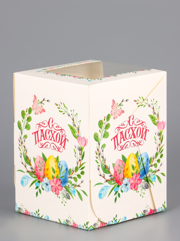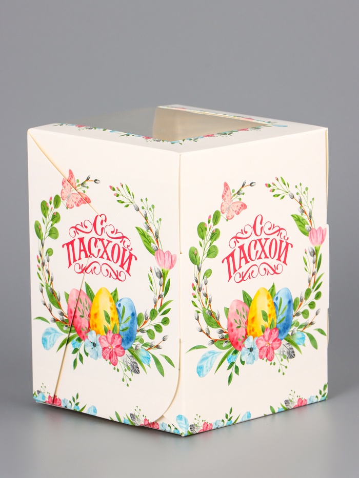 Коробка подарочная пасхальная с окном «Пасхальный венок» 9.5×9.5×12.5 см — Характеристики