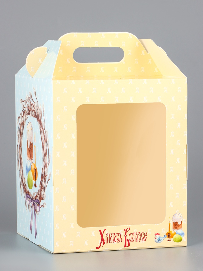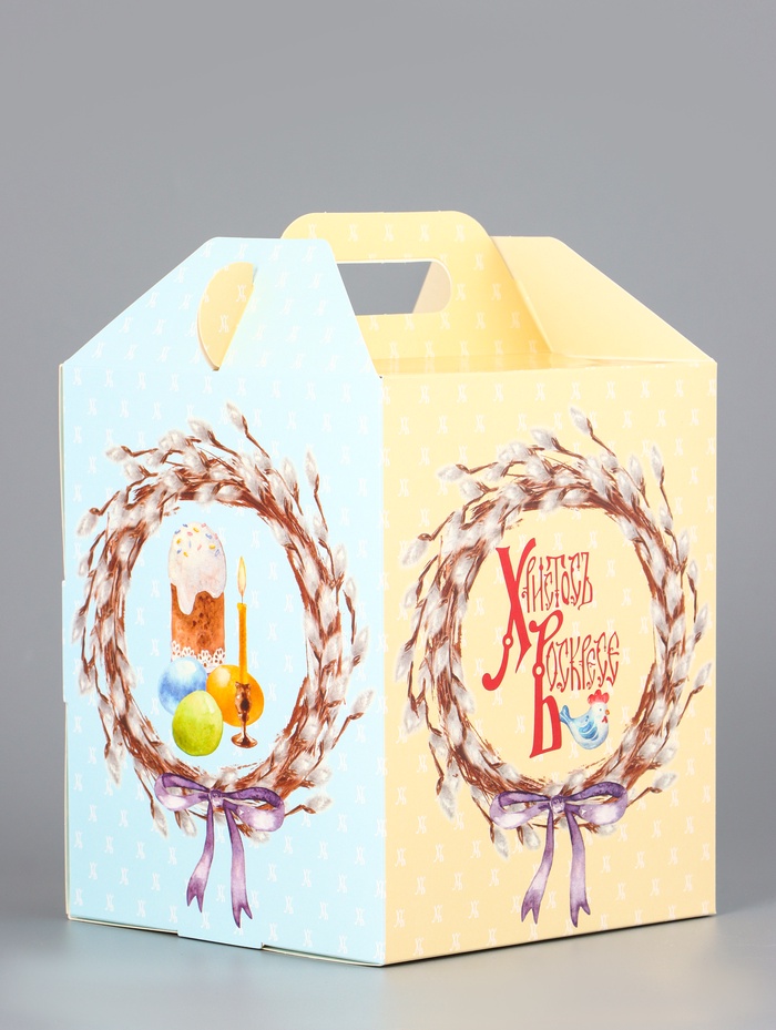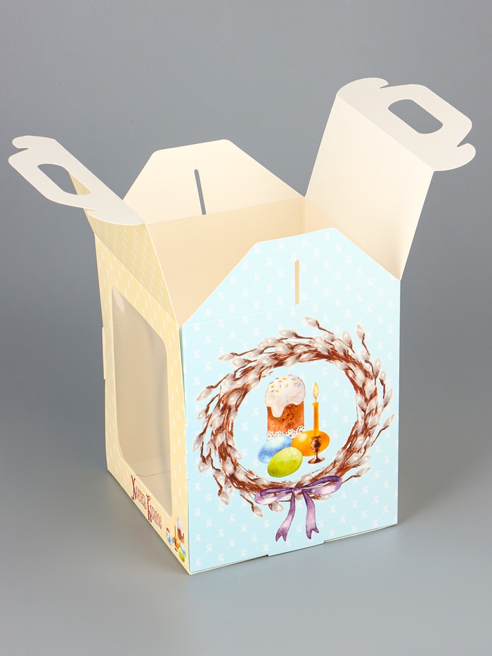 Коробка подарочная пасхальная с окном, с фронтальной загрузкой «Верба» 15×15×18 см — Характеристики