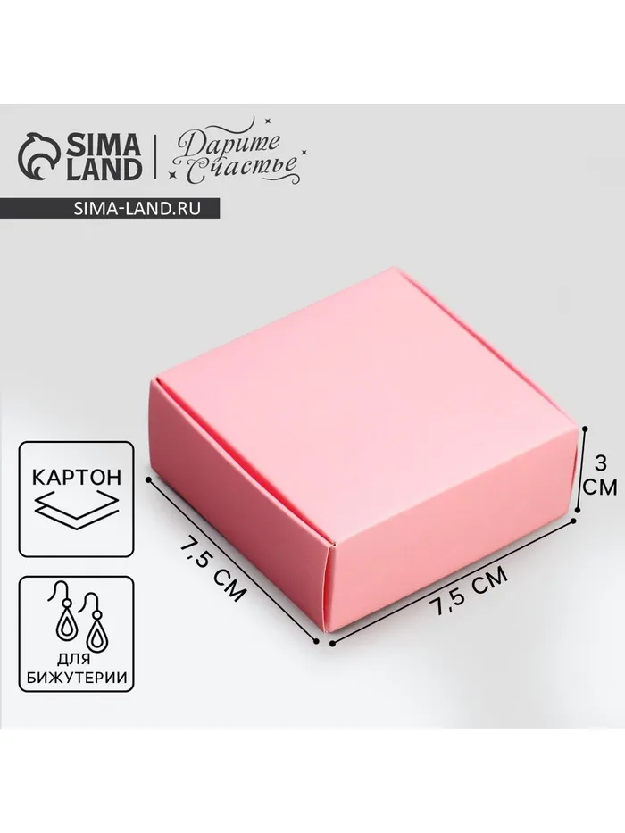 Коробка подарочная под бижутерию двухсторонняя, упаковка, «Розовая», 7.5 х 7.5 х 3 см — Характеристики