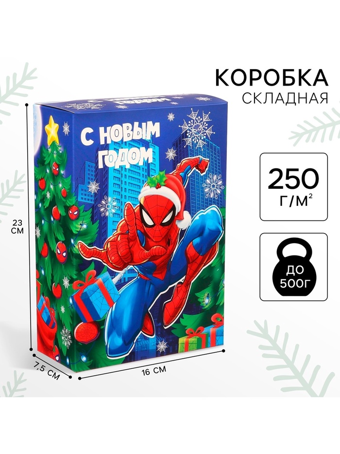 Коробка подарочная «С Новым годом», 16×23×7.5 см, Человек-паук — Характеристики
