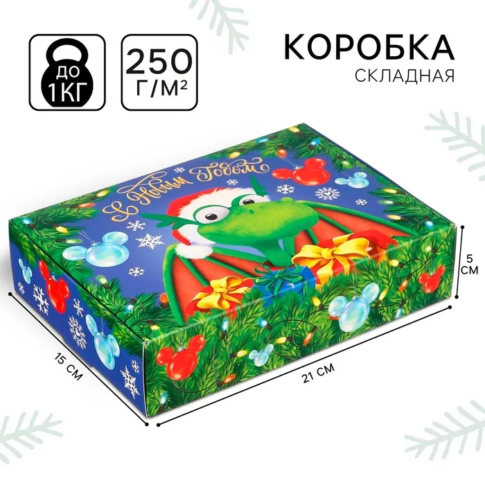 Коробка подарочная «С Новым годом», 21×15×5 см, Микки Маус и Дракон — Характеристики