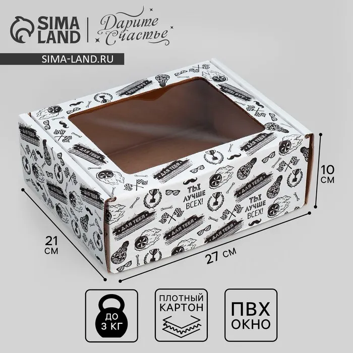 Коробка подарочная сборная с окном, упаковка, «Лучше всех», белый, 27 х 10 х 21 см — Характеристики