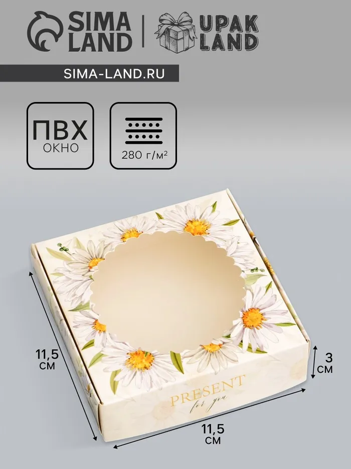 Коробка подарочная сборная с окном, упаковка, «Презент», 11.5×11.5×3 см — Характеристики