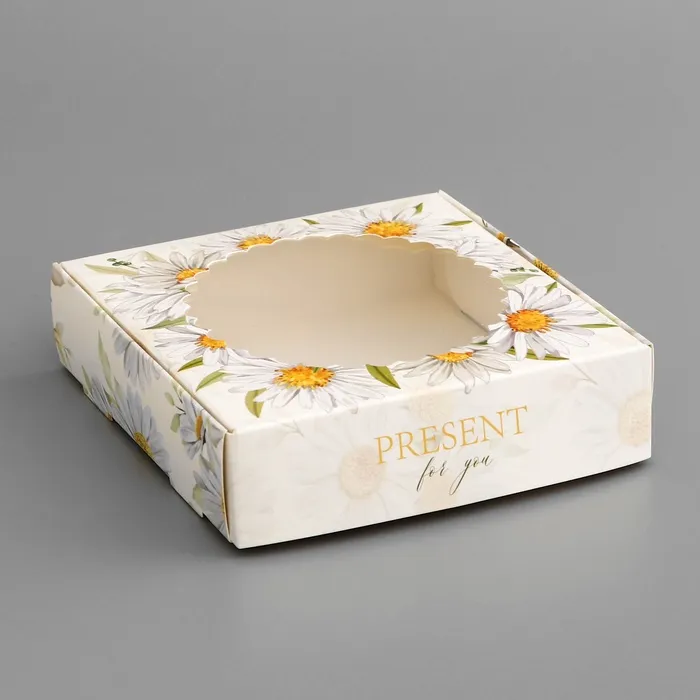 Коробка подарочная сборная с окном, упаковка, «Презент», 11.5×11.5×3 см