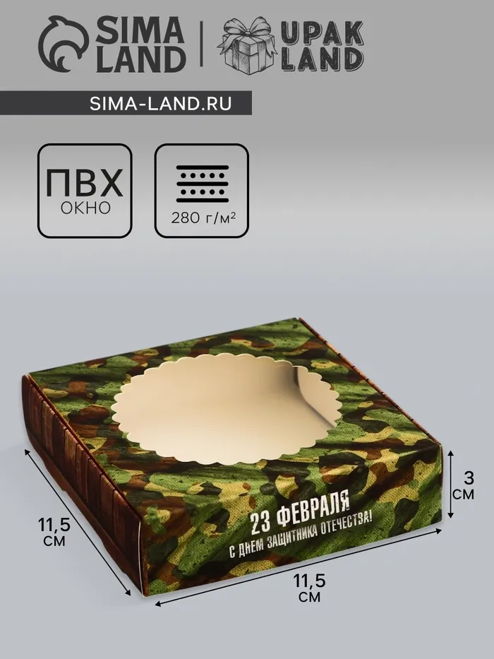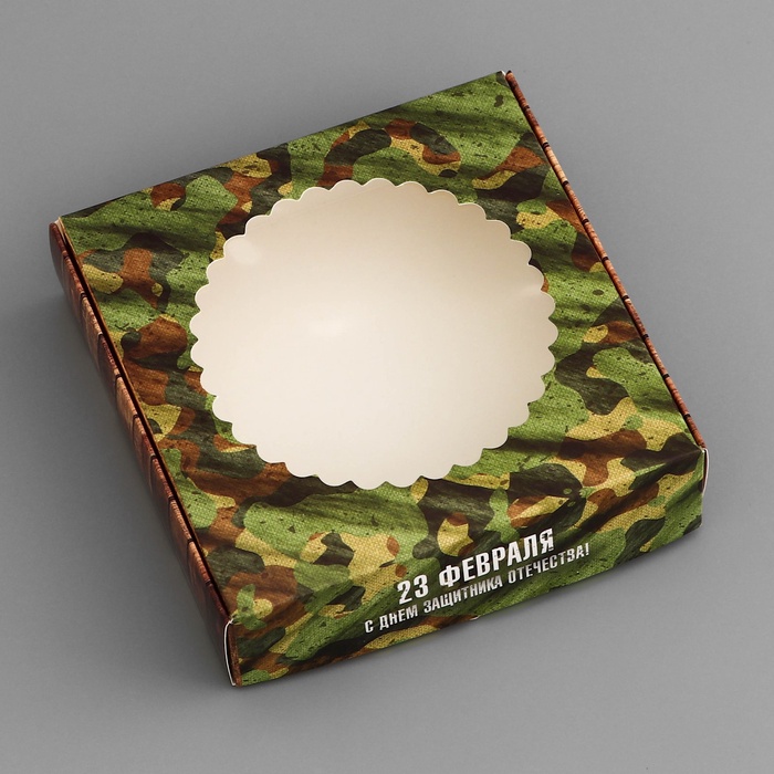 Коробка подарочная сборная с окном, упаковка, «С днем защитника Отечества», 11.5×11.5×3 см — Характеристики