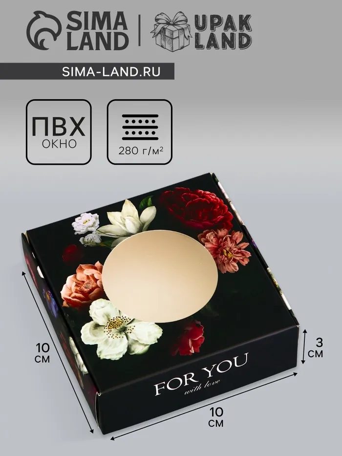 Коробка подарочная сборная с окном, упаковка, «С любовью», 10×10×3 см — Характеристики