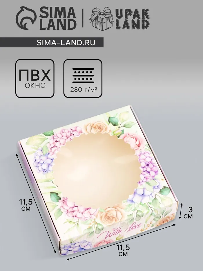 Коробка подарочная сборная с окном, упаковка, «С любовью», 11.5×11.5×3 см — Характеристики