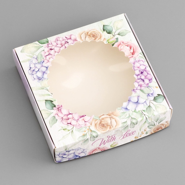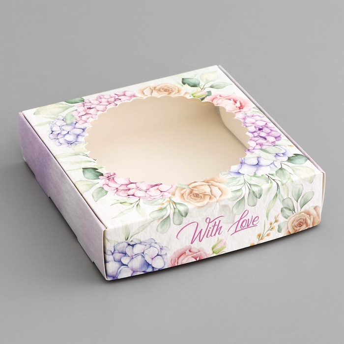 Коробка подарочная сборная с окном, упаковка, «С любовью», 11.5×11.5×3 см