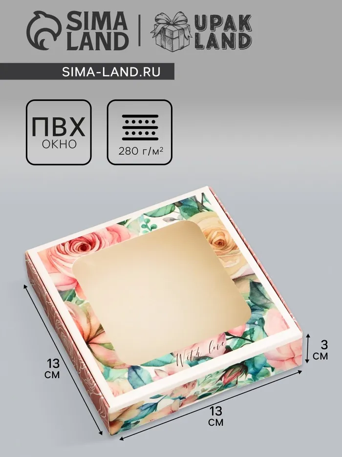 Коробка подарочная сборная с окном, упаковка, «С любовью», 13×13×3 см — Характеристики